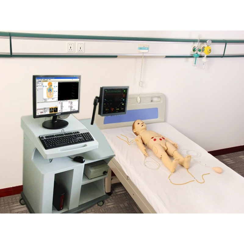 人機(jī)互動(dòng)兒童ACLS訓(xùn)練模擬系統(tǒng),模擬真實(shí)的急救場(chǎng)景??烧鎸?shí)模擬急診時(shí)兒童的相關(guān)體征,如瞳孔狀態(tài)、動(dòng)脈搏動(dòng)、心律、心肺聽診等,并可使用的臨床急救措施如除顫、起搏、CPR、藥物治療等。智能化模擬病人,會(huì)根據(jù)操作者的不同施救措施,表現(xiàn)出不同的生命體征變化。開放的病例編輯功能,教師可根據(jù)臨床實(shí)際或教學(xué)需要自主編輯所需要的急診病例,供學(xué)生訓(xùn)練使用。網(wǎng)絡(luò)交互功能可完成全體教學(xué),教師可隨時(shí)獲取學(xué)生的操作數(shù)據(jù),及時(shí)糾正或指導(dǎo)。