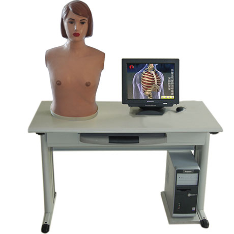 本系統(tǒng)通過計算機編程控制,將多媒體教學系統(tǒng)中數(shù)百種典型病人的心肺觸診聽診體征再顯現(xiàn)于仿真人體模型的相應部位,能夠形象地模擬觸覺語顫、胸膜摩擦音、心音、額外心音、心律失常、心臟雜音及雜音的傳導、心包摩擦音等,學生可在仿真病人身上反復學習。同時,系統(tǒng)還選擇了多種聽診體征差異較小易混淆的心肺體征音,用文字、圖表進行鑒別對照并可進行技能訓練的聽診對照,使學員能夠盡快掌握鑒別要點,提高學生的臨床診斷能力。