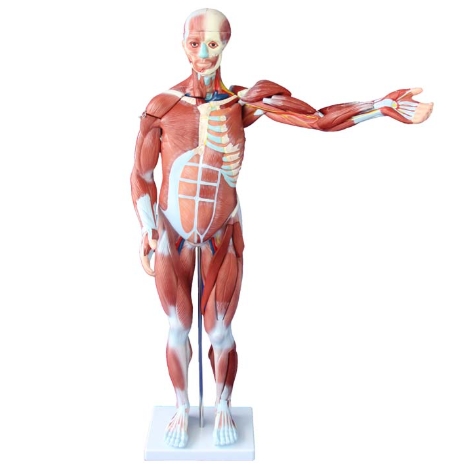這個(gè)人體肌肉模型包括27個(gè)可解剖的部分:身體、切割顱骨、大腦(2部分)、胸腹壁、右臂、左臂(5部分)、腿(9部分)、肺(2 份)、心臟(2 份)、肝、胃和腸。