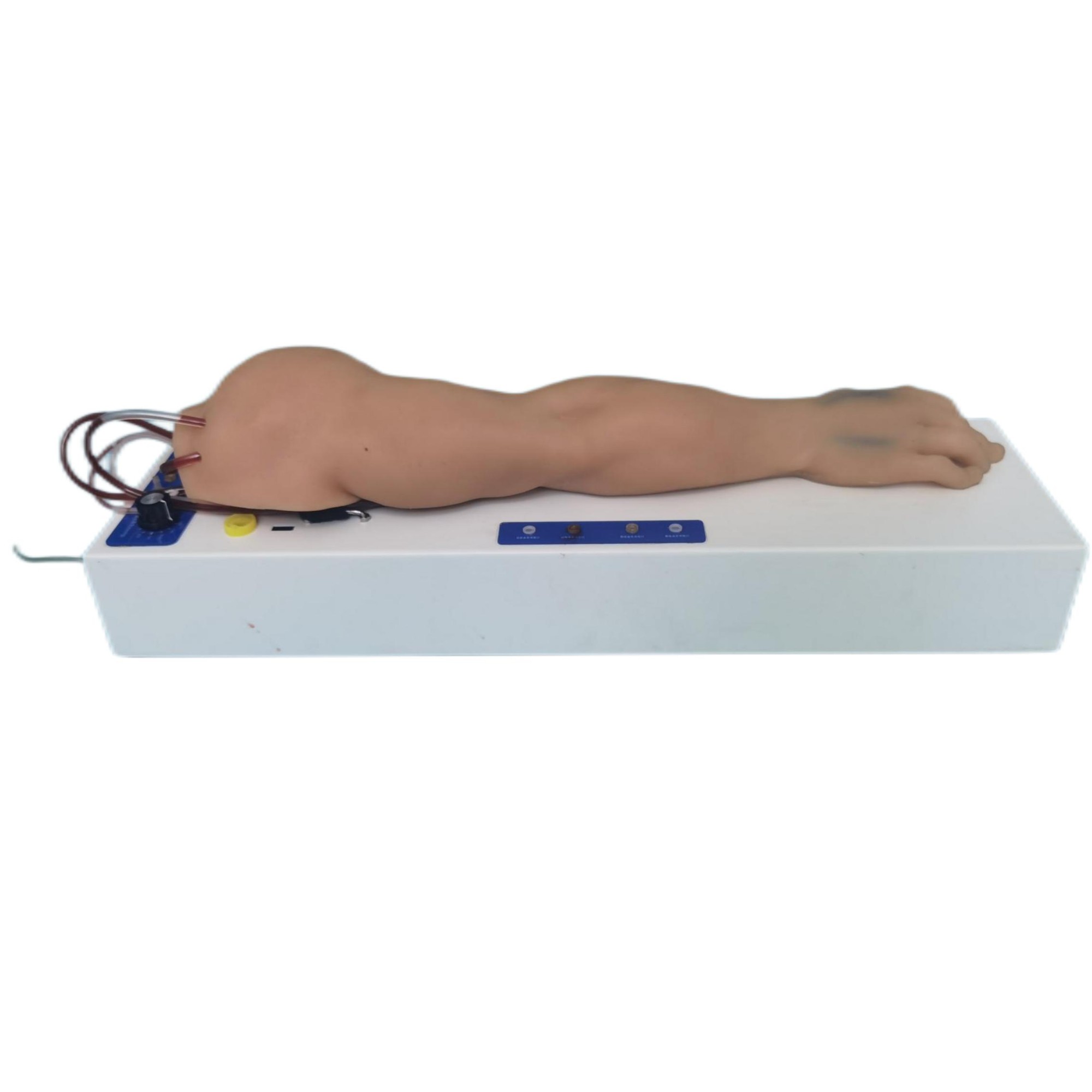 2、配置了動脈及靜脈循環(huán)系統(tǒng)機座。機座內(nèi)設置有電動動脈血液循環(huán)系統(tǒng)裝置(內(nèi)置脈搏啟動儀)及內(nèi)置靜脈血液循環(huán)系統(tǒng)裝置,無需懸掛血漿袋便可在操作練習時形成動、靜脈血液循環(huán)。