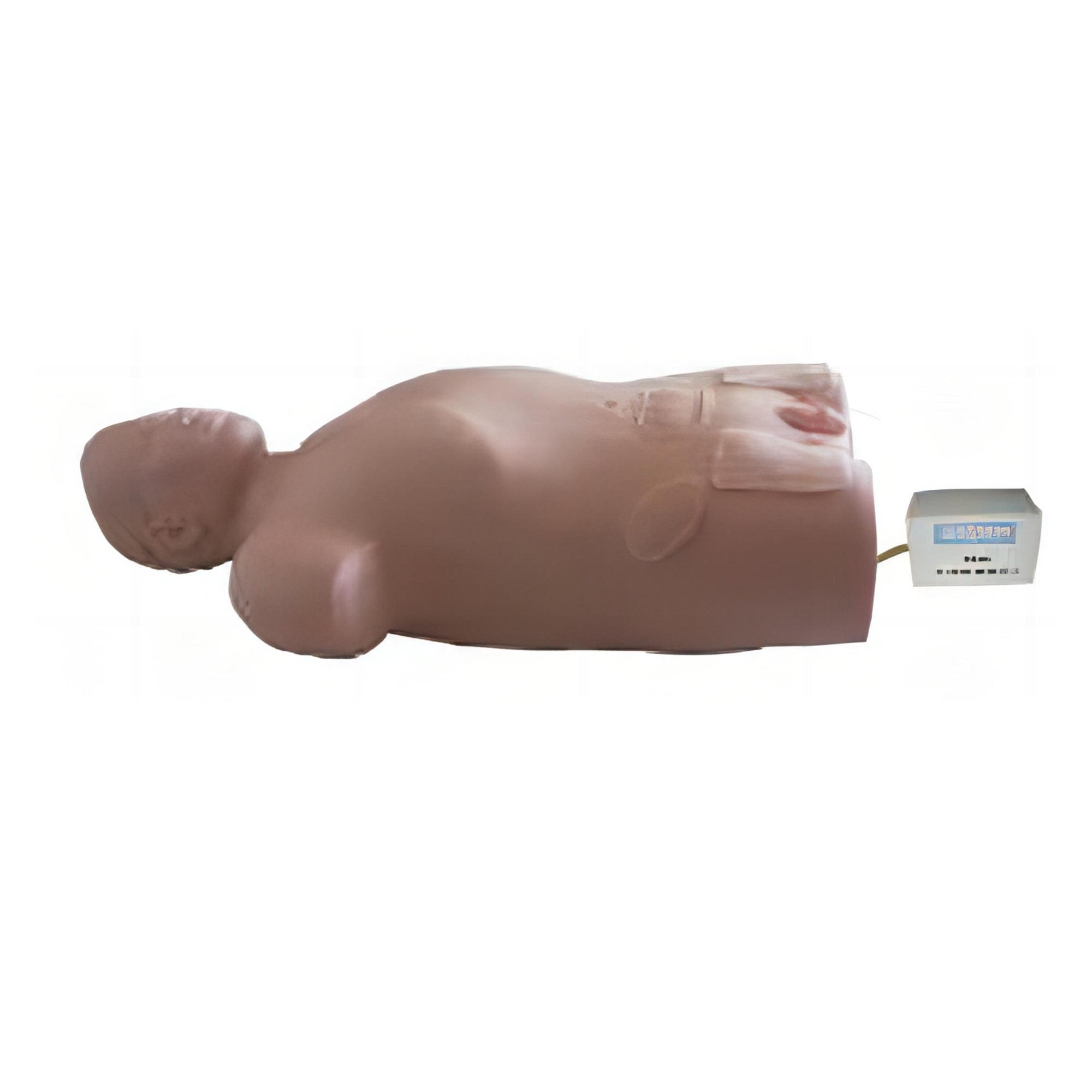 ▲ 模擬人胸腹腔內(nèi)儲存有頸內(nèi)靜脈、鎖骨下靜脈、股靜脈各1.5米備用的血管。血管更換十分方便,只需將破損部分拉出,剪出破損部分即可。可行術前無菌術操作訓練。
