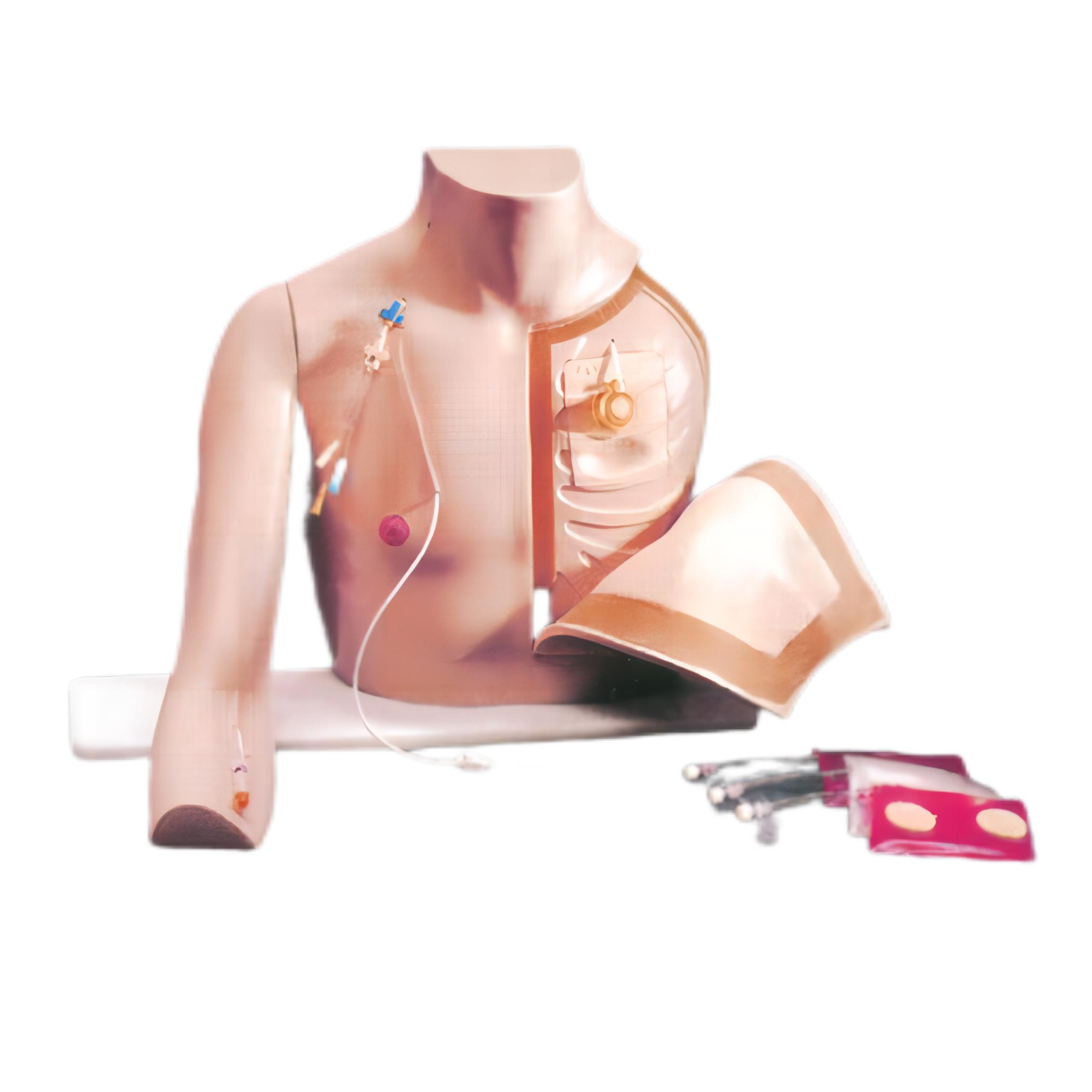 ▲高度模擬的上半身模型,帶有可分開(kāi)的右手手臂,可進(jìn)行插入、護(hù)理和取出,長(zhǎng)時(shí)間的血管通道等模擬訓(xùn)練。