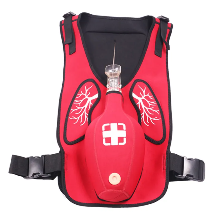 窒息急救、實訓穿戴馬甲:意外窒息意味著丟掉生命!防窒息急救教育和實訓的時候,穿戴在學員身上,針對異物造成的呼吸氣道堵塞狀況時,練習腹部按壓(即海姆立克手法),做出正確 步驟處理,擠出堵塞氣道異物(異物塞),直觀的教學模式給學員帶來自信和應用實效。模擬者可采用站姿、坐姿、用教具或借助柜臺、桌椅,實習體驗窒息自救、急救、達到救人一命的教學目的。