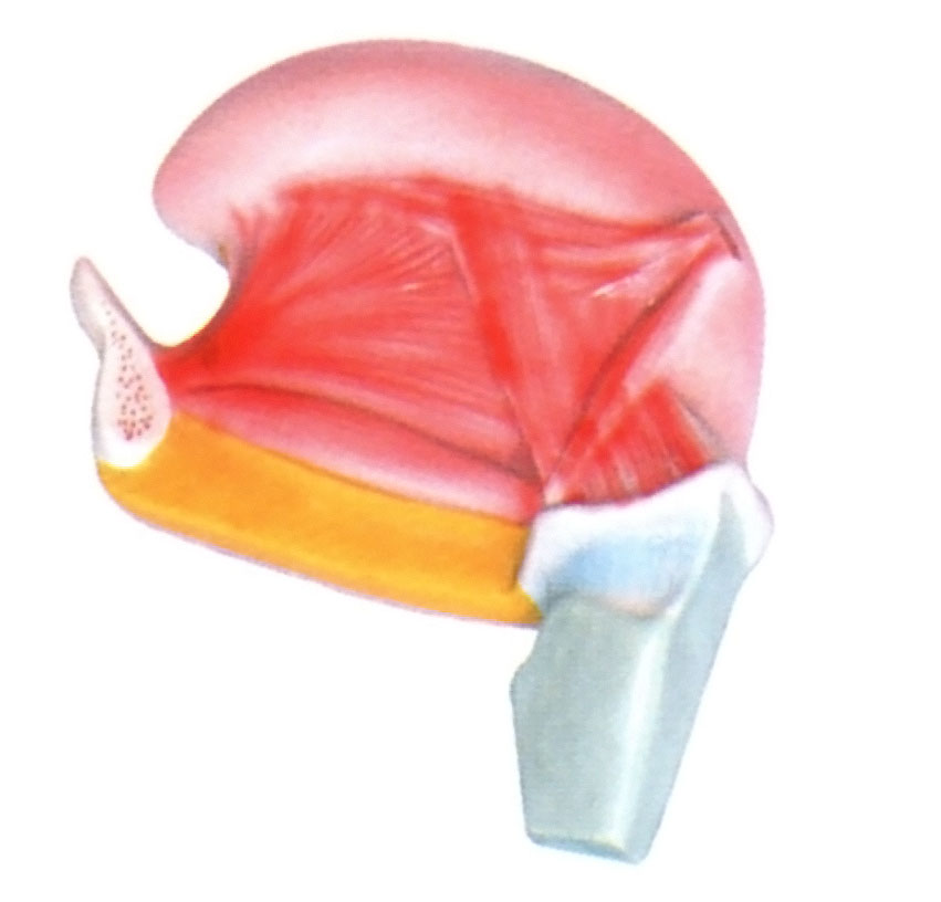 這是一對強有力的肌,起自下頜體后面的頦棘,肌纖維呈扇形向后上方分散,止于舌中線兩側(cè)。兩側(cè)頦舌肌同時收縮,
