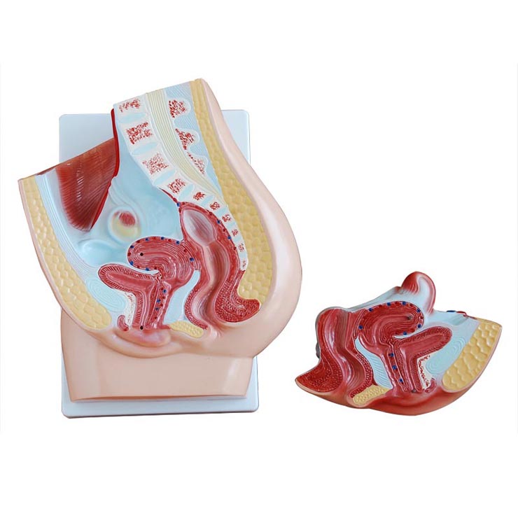博友BOU-XC332B-1女性盆腔正中矢狀切面模型作矢狀切面,顯示女性內(nèi)生殖器、子宮體、陰道,子宮闊韌帶等。很詳細的顯示了腹部和骨盆肌肉。