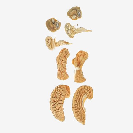 BM1124腦模型該模型由腦矢狀切面、大腦半球、小腦和腦干等8個(gè)部件組成,并顯示大腦半球、間腦、小腦和腦干中腦、腦橋、延髓各個(gè)部分,以及腦神經(jīng)等結(jié)構(gòu),共有98個(gè)部位指示標(biāo)志。