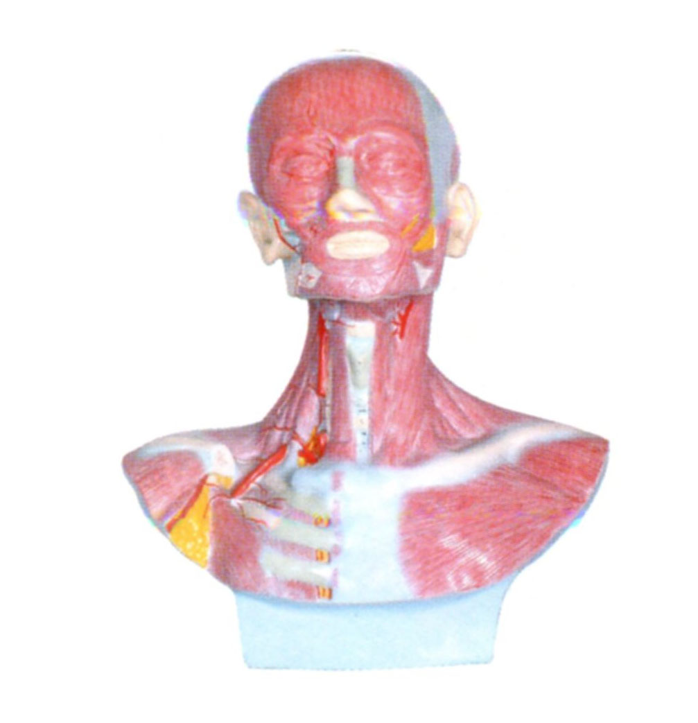 博友BM1276頭、面、頸部解剖和頸外動脈配布模型主要示表情肌、咀嚼肌、頸部肌群、胸部、背部部分肌肉及頸外動脈的分布,適用于中等學校、衛(wèi)校、醫(yī)學院校在人體解剖學教學時作為直觀教具。