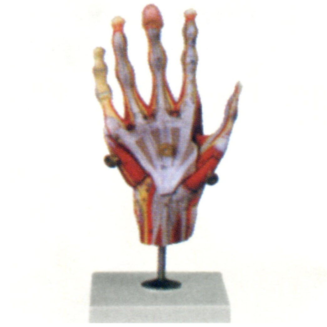博友BM1302手肌附主要血管神經(jīng)模型由手肌、掌腱膜、魚際、小魚際和蚓狀肌等5個(gè)部件組成,并顯示手肌分層、手骨、韌帶、肌腱及其主要血管神經(jīng)等結(jié)構(gòu)。