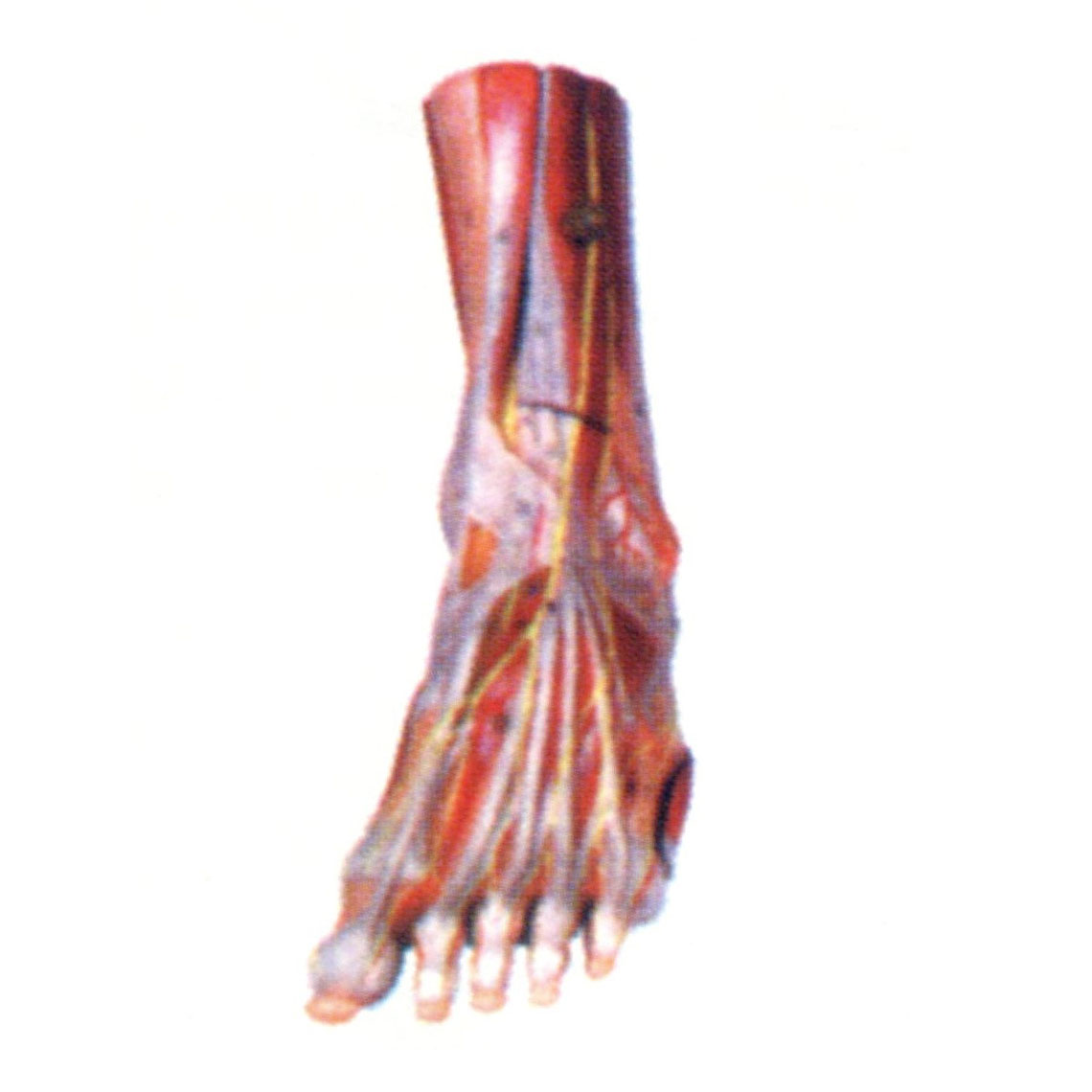 博友BM1303足肌附主要血管神經(jīng)模型由足肌、趾長(zhǎng)伸肌、腓腸肌、屈肌支持帶、足母短屈肌、足母收肌斜頭、小趾展肌、趾短屈肌、足底方肌等9個(gè)部件組成,并顯示脛、腓骨和足骨、小腿肌、足肌等結(jié)構(gòu)。