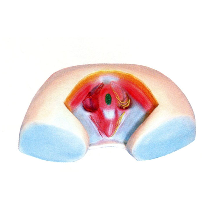 博友BM1306女性會(huì)陰模型顯示女性會(huì)陰范圍、前方的尿生殖三角(尿生殖區(qū))、后方的肛門三角(肛區(qū))以及會(huì)陰的解剖結(jié)構(gòu)(包括生殖器官、會(huì)陰肌、神經(jīng)和血管等)。