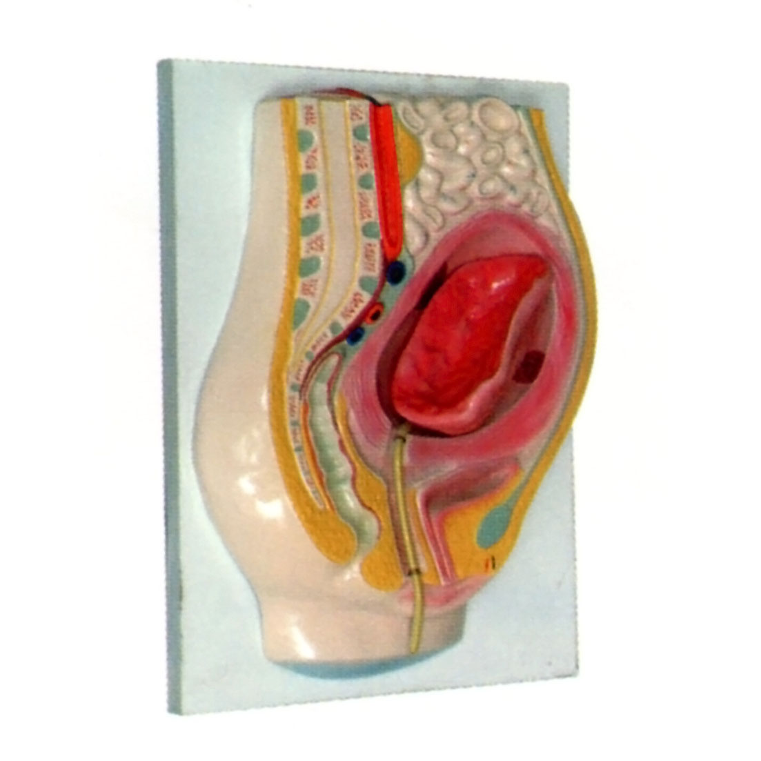 博友BM2048胎盤剝離模型作腹盆腔矢狀切面,示胎兒娩出后宮腔體積及胎盤附著面減小時(shí)的子宮、陰道、胎盤、臍帶的形態(tài)結(jié)構(gòu)。