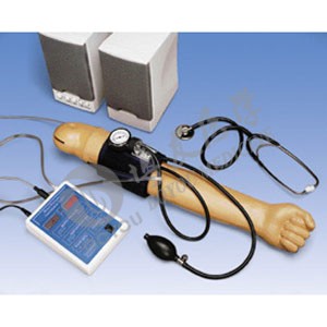 這款左臂的模型也可與成人病人護理模型相連(若模型提供此選項)。心臟收縮和舒張壓,聽診間歇和脈搏頻率可自行確定。血壓計綁帶上的壓力可由屏幕顯示出來。