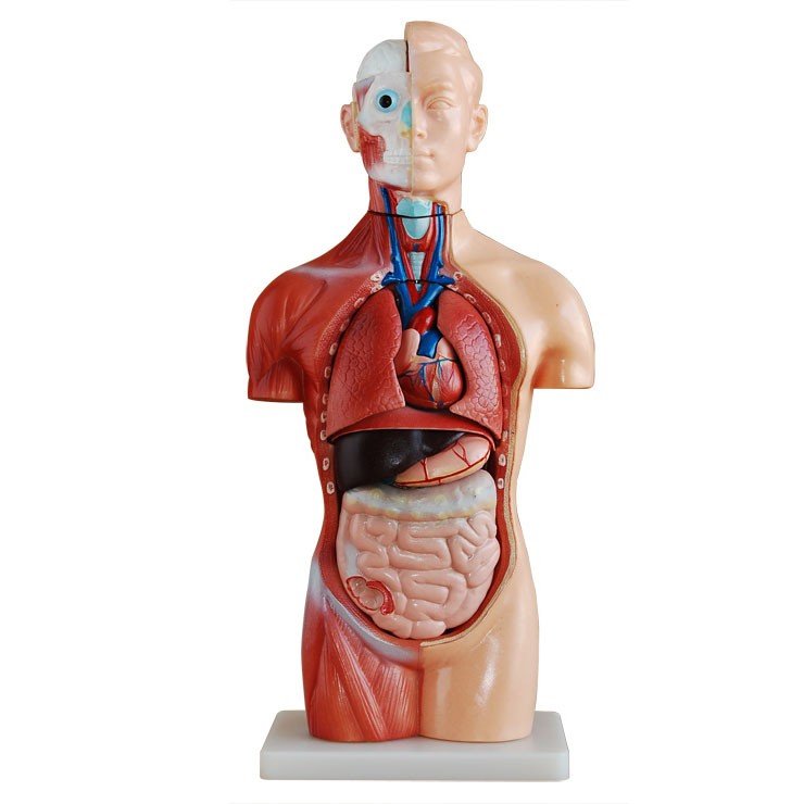 博友BOU-XC207無性軀干模型42CM(18件)這款無性軀干模型分成18件:軀干,頭,腦,氣管,食管和主動脈,橫隔膜,肺(4件),心臟(2件),胃,肝,腎,胰和脾,腸,脊椎神經(jīng)。脊椎露在外面。